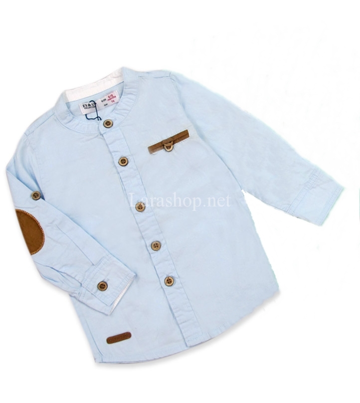 Áo sơmi size nhí màu xanh cổ trụ, có miếng đắp trỏ tay sành điệu, hàng Trung – X880 Size 6-12kg – 160k