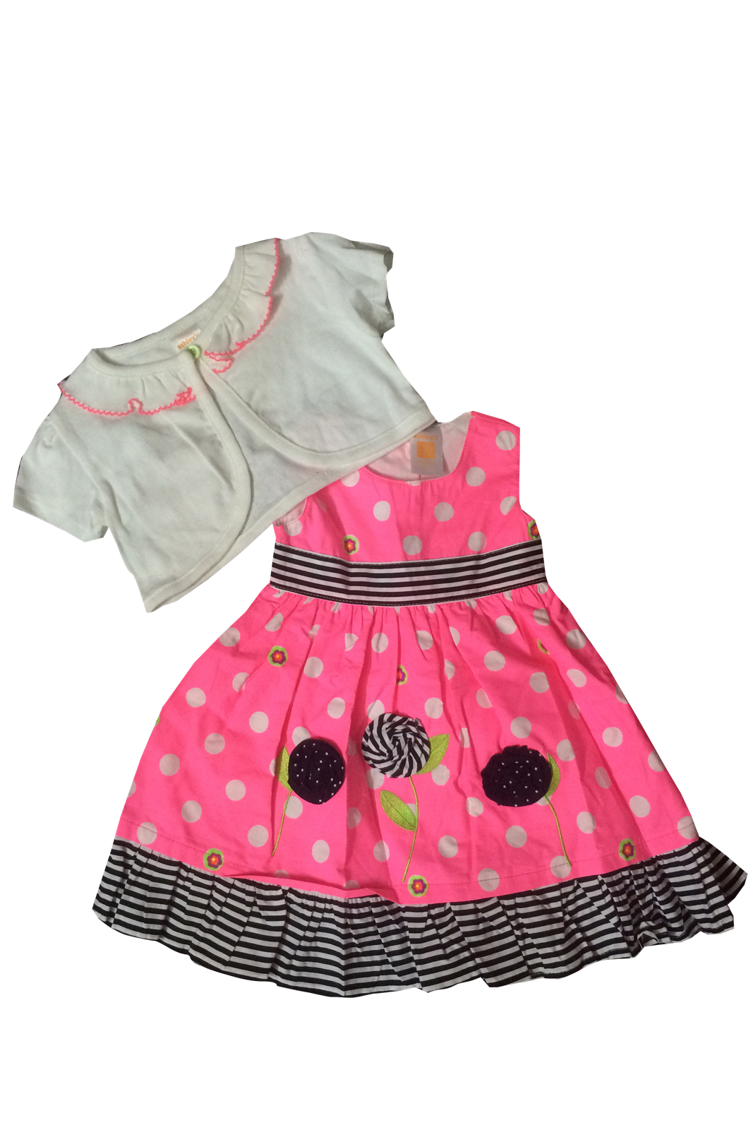 Set đầm bé gái (gồm: Áo đầm kate cotton, kèm áo khoác tay ngắn) hàng Thái – X899 Size 3m, 6m, 9m – 185k/set