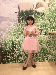 Áo dài chấm bi hồng phấn phối chân váy voan kèm dây cài tóc cùng tone – A218 Size 1, 2, 3, 4, 5, 6, 7, 8 – 160k/set