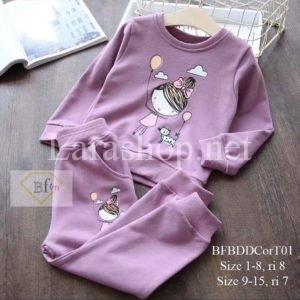 Bộ thun cotton 4 chiều dài tay Bé và Mèo màu tím – A236