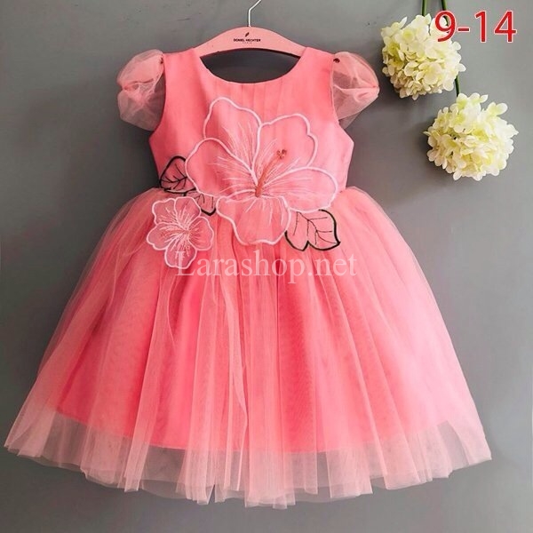 Đầm voan tay nơ kết hoa màu hồng ruốc, có 2 dòng size nhí và đại – A234 Size 1-8: 210k, Size 9-14: 230k