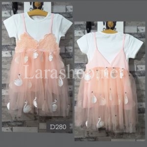 Set áo thun cotton trắng phối yếm voan thiên nga, hàng Quảng Châu – N199 Size 110, 120, 130, 140, 150, 160 – 165k/set