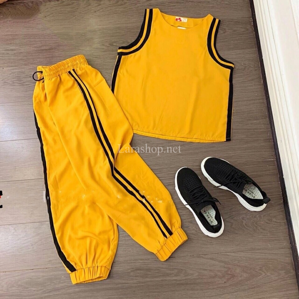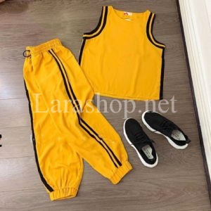 Bộ thun thể thao cotton hiphop màu vàng – A338