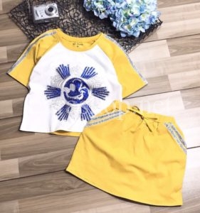 Bộ thun cotton áo kết kim sa phối chân váy, size đại – A438