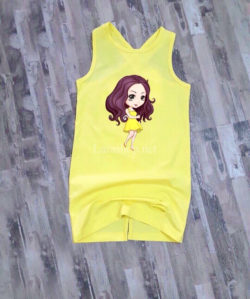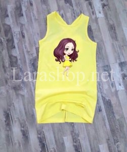 Đầm thun cotton chéo dây lưng, in hình cô gái – A458