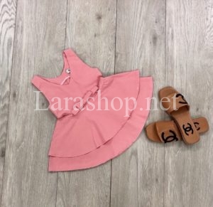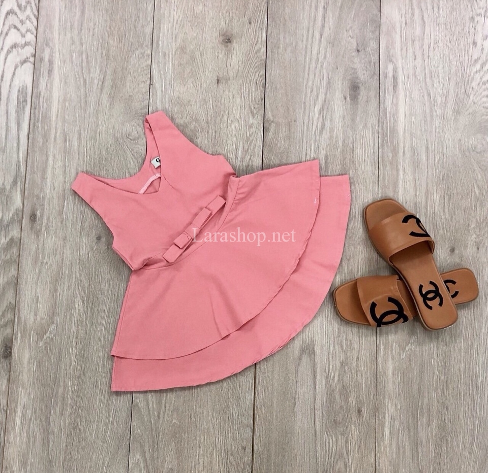 Đầm thun tầng hồng dâu đính nơ eo – A477