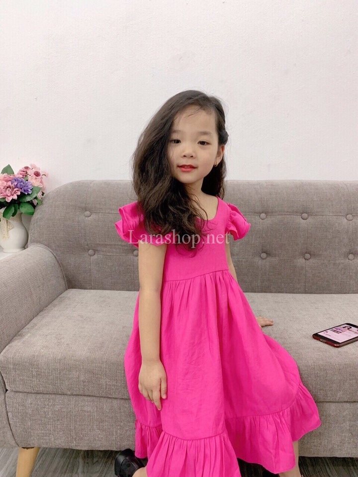 đầm maxi tơ đũi hồng sen, có 2 dòng size nhí và đại – A538 Size nhí: 2-9, 155k; size đại: 10-15, 170k