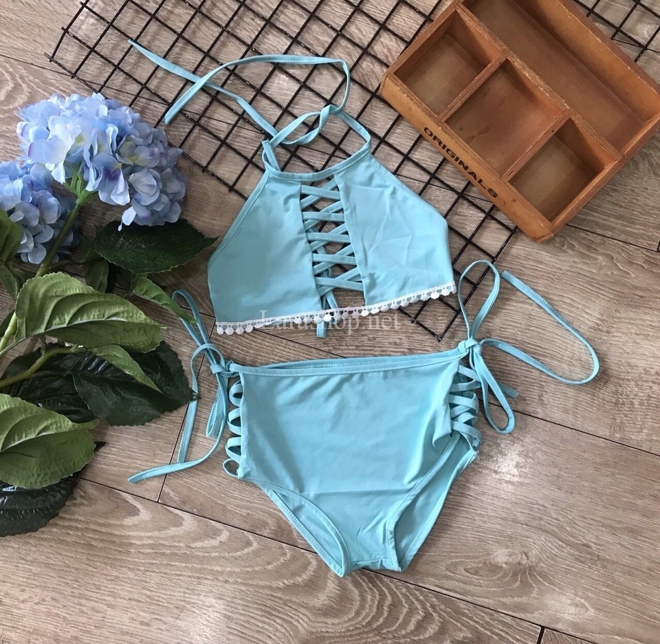 Set bikini đan dây xanh – A591