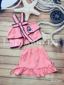 Bộ áo dây nơ phối chân váy thun cotton hồng cam – A635