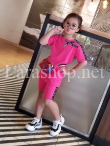 Bộ thun cotton hồng sen phối ruy băng, có 2 dòng size nhí và đại – A668 Size nhí 1-8, 130k/bộ; size đại 9-15, 145k/bộ