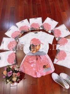 Bộ short thun lạnh hình cô gái, có 2 dòng size nhí và đại – A771