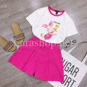 Bộ áo thun in hình phối váy short kaki, size đại – A833