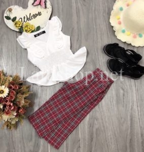 Bộ áo kiểu phối quần caro, size đại – A856