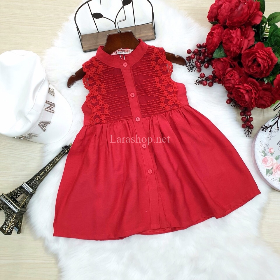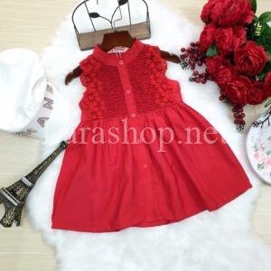 Đầm cổ trụ phối ren đỏ – A983
