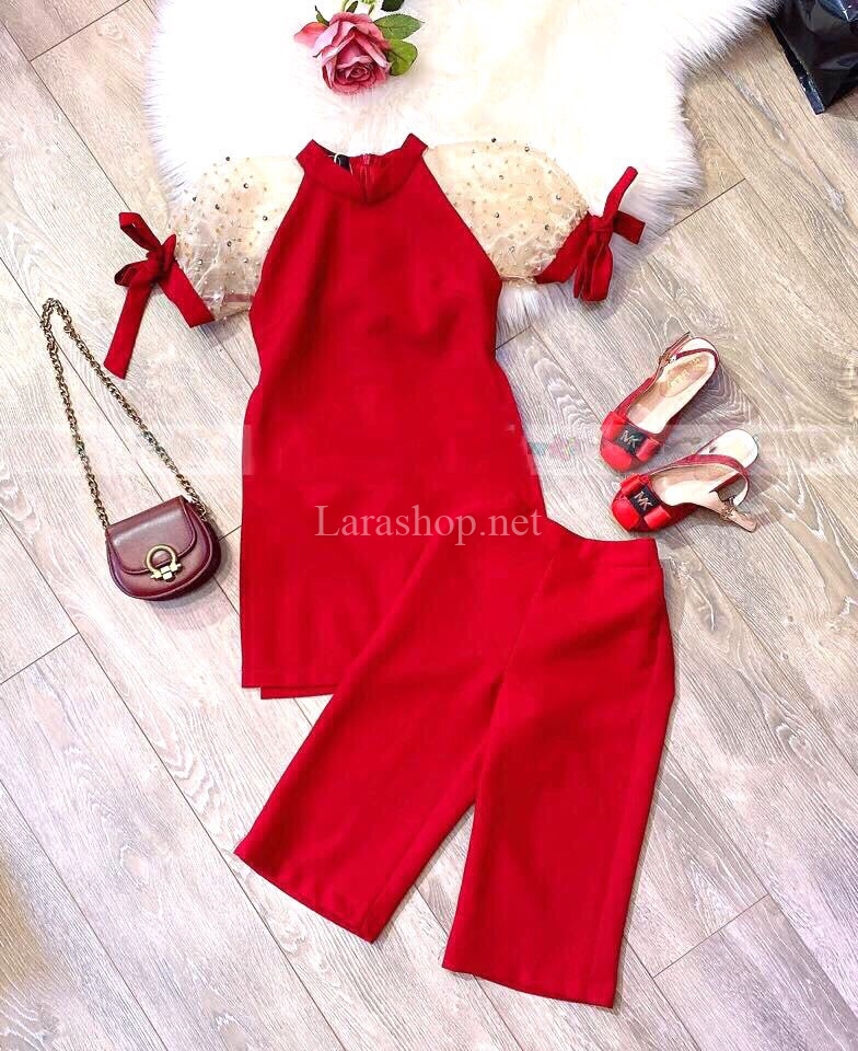 Bộ áo dài đỏ cách tân, có 2 dòng size nhí và đại – A991 Size nhí: 2-9, 170k/bộ; size đại: 10-15, 185k/bộ