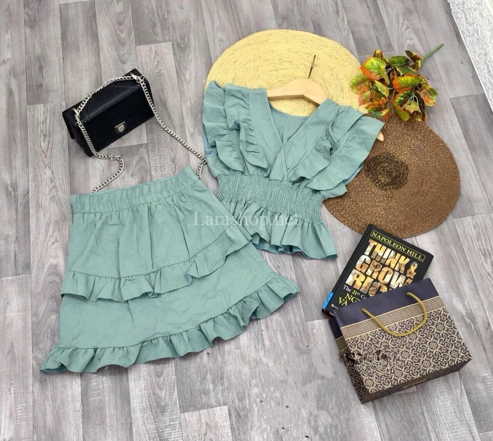 Bộ váy bo eo nhúng bèo, size đại – A997