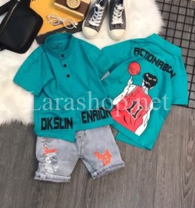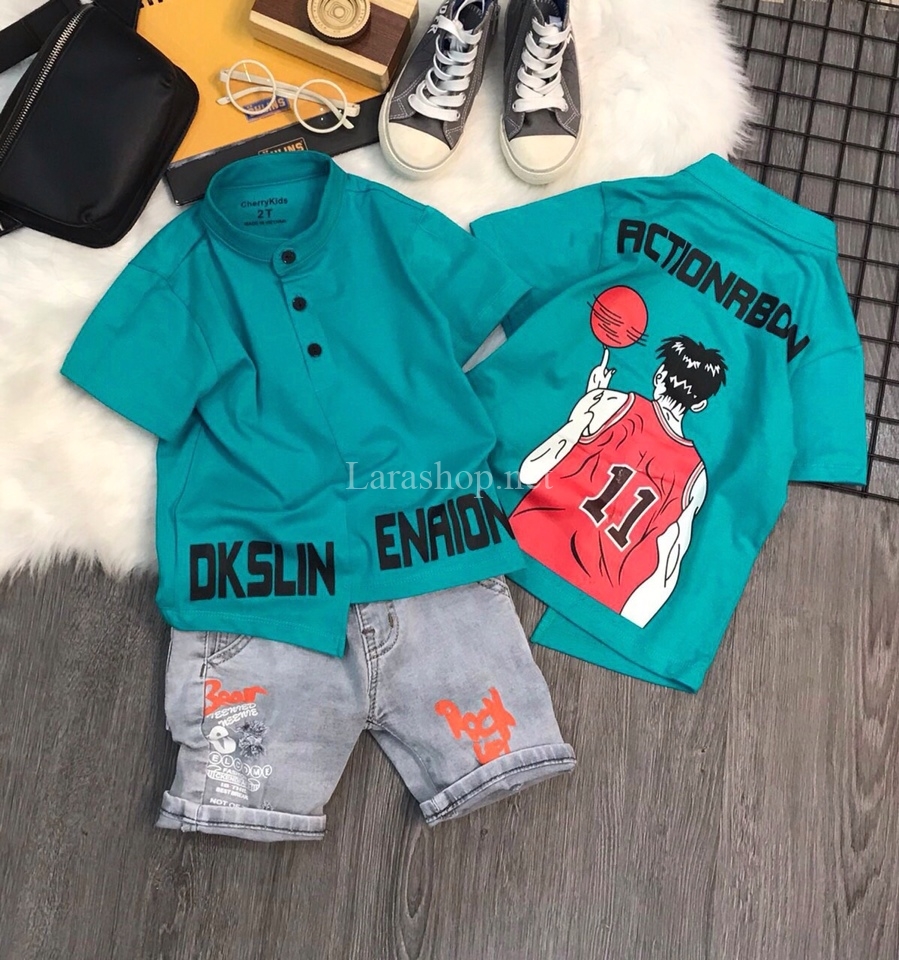 Bộ áo thun cổ trụ phối jean lửng – R006