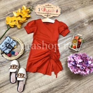 Đầm thun đỏ rút dây – R005