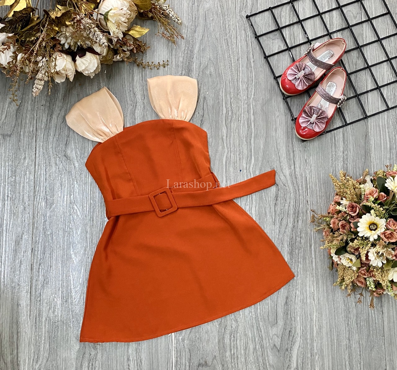 Đầm thắt lưng màu gạch ngói – R031