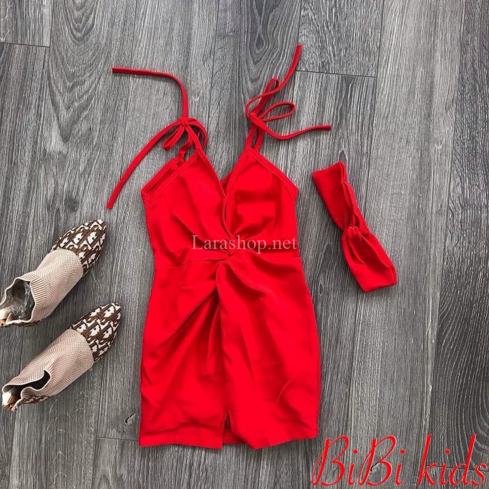 Đầm 2 dây thun xoắn thân áo kèm băng đô, size đại – R066