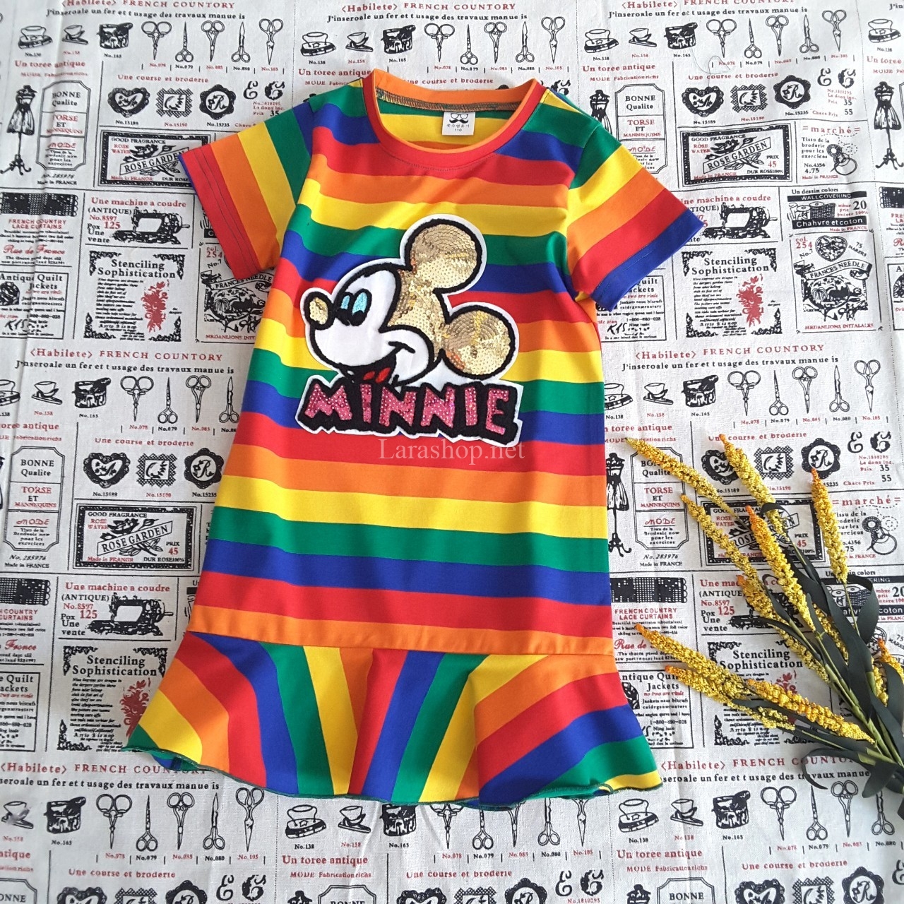 Đầm thun cotton Minnie đuôi cá kết kim sa, hàng Quàng Châu – N258 Size 110, 120, 130, 140, 150, 160 – 155k