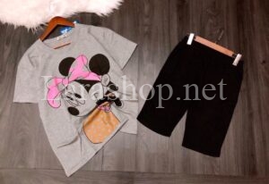 Bộ áo form rộng Mickey cotton phối quần ôm lửng, size đại – R109