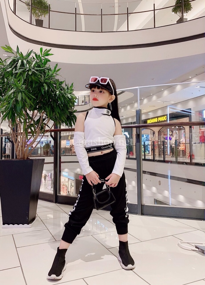 Bộ hiphop nối tay trắng đen, size đại – R129