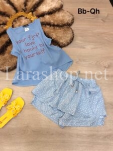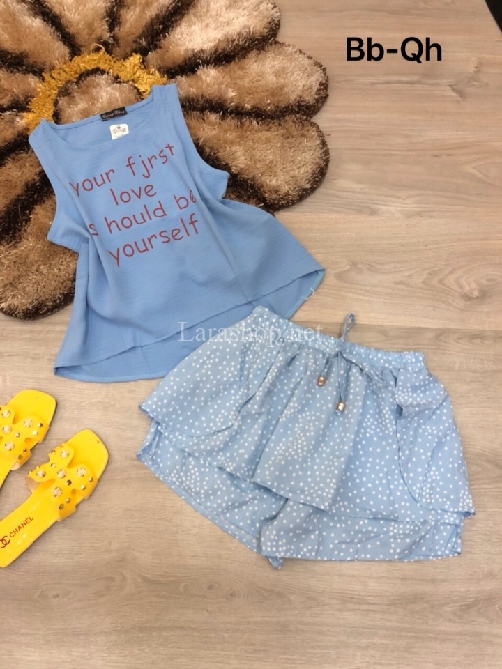 Bộ áo in chữ phối short voan tầng – R142
