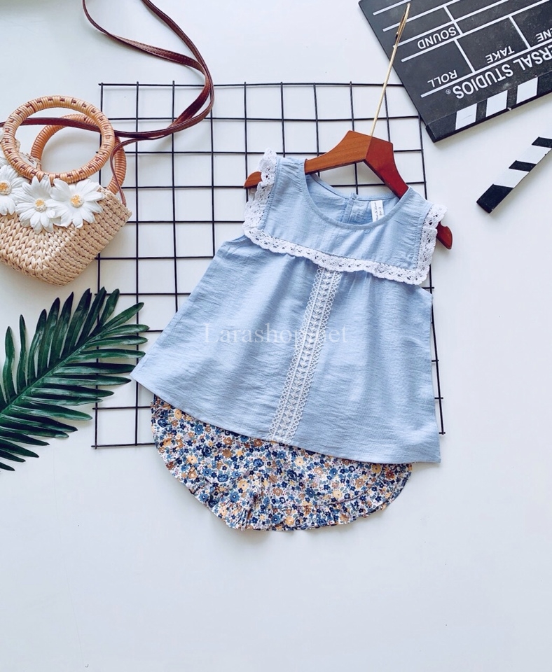 Bộ áo viền ren phối quần phồng hoa – R156