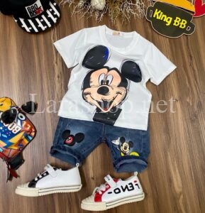 Bộ thun cotton phối jean lửng Mickey, size đại – R252