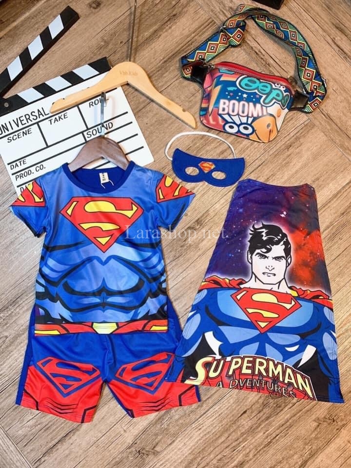 Bộ Superman thun lạnh kèm choàng và mặt nạ, size đại – R306