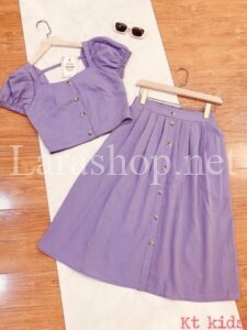 Bộ áo croptop phối chân váy tím, size đại – R335