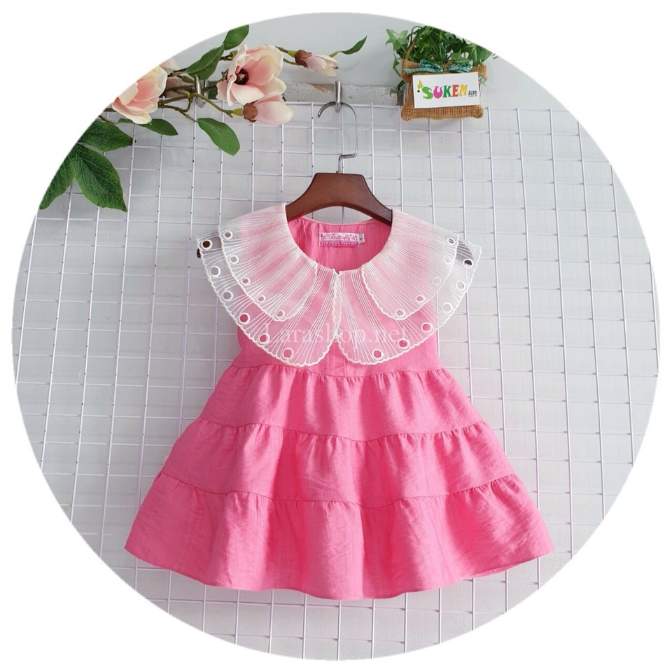 Đầm hồng tơ phối cổ voan cánh bướm – R357