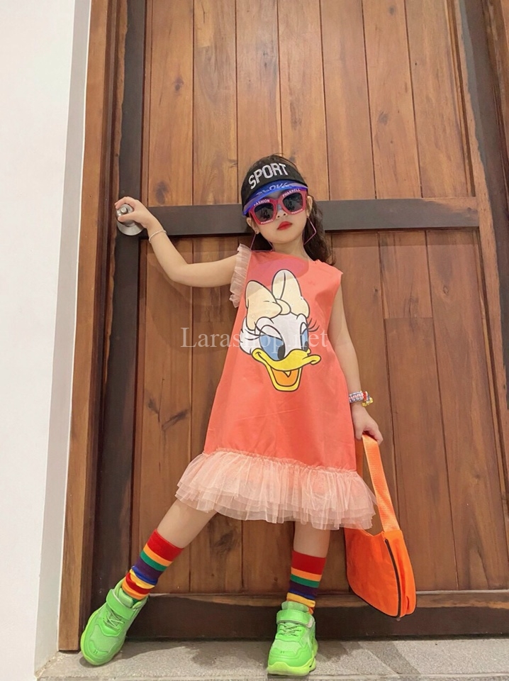 Đầm Donald phối voan, kết kim sa, có 2 dòng size nhí và đại – R367 Size nhí: 2-9, 145k; size đại: 10-16, 155k