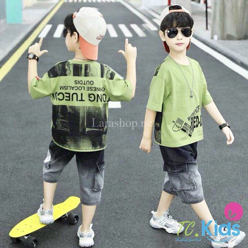 Bộ áo cotton in hình phối lửng túi hộp, size đại – R417 Size 9, 10, 11, 12, 13, 14, 15 (20-34kg), 225k/bộ
