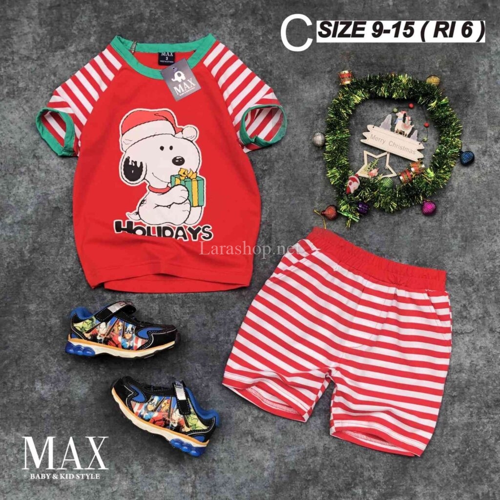 Bộ cotton in hình phối lửng sọc Noel, size đại – R469