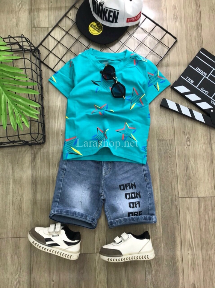Bộ áo cotton in sao phối jean lửng, size đại – R565