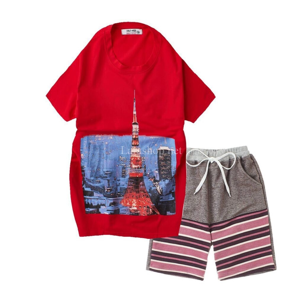 Bộ cotton in hình phối lửng sọc, size đại – R722