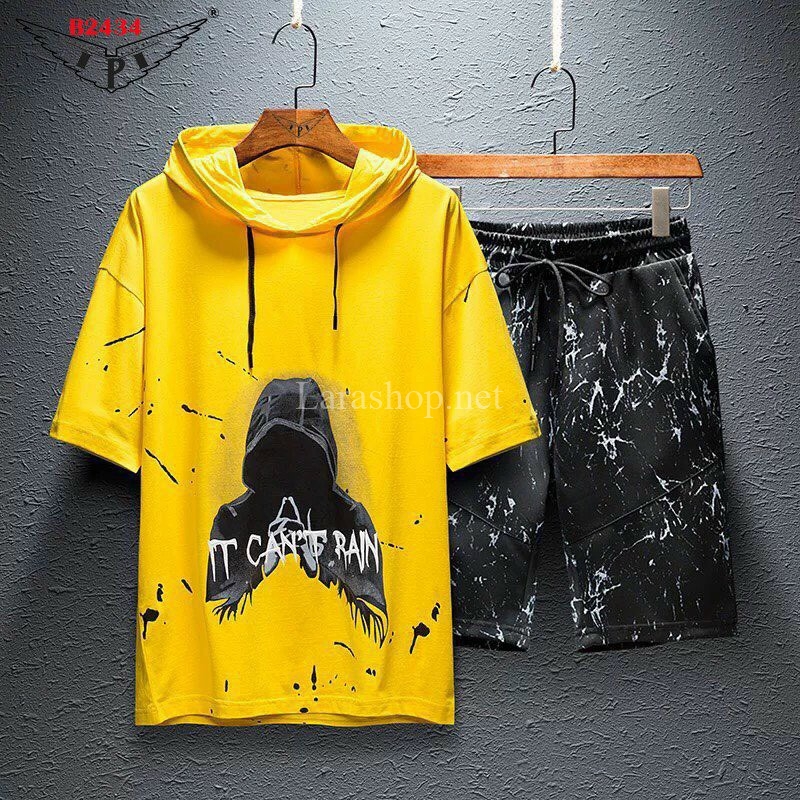 Bộ cotton nón in hình phối lửng, size cồ – R846