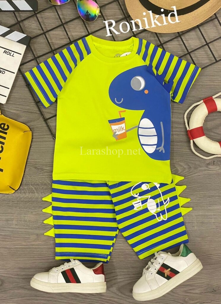 Bộ cotton khủng long xanh chuối, size nhí – R880