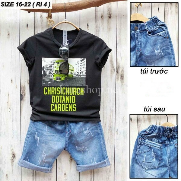 Bộ áo cotton in hình phối jean lửng, size cồ – R900