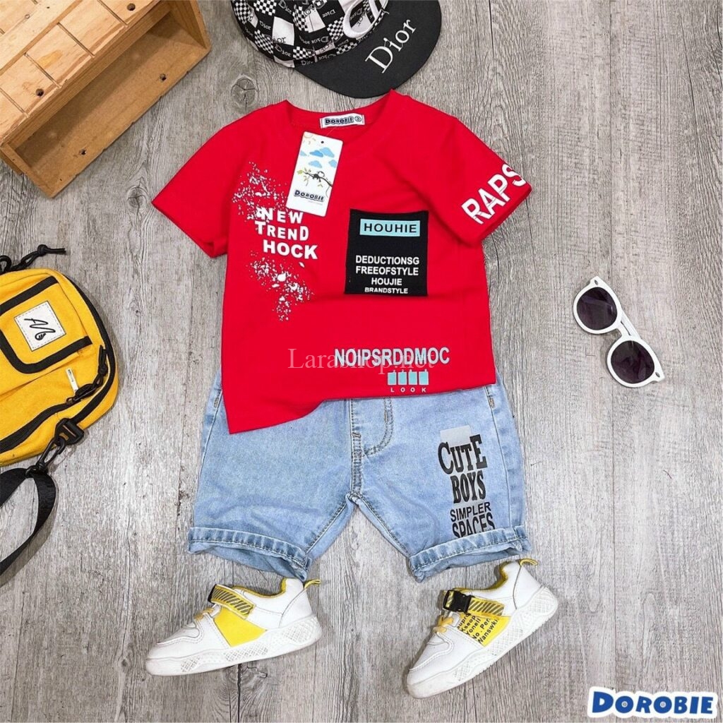 Bộ áo cotton in chữ phối jean lửng, size đại – Y053