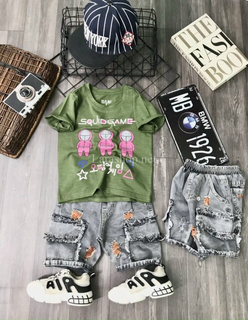 Bộ áo in hình phối jean lửng, size đại – Y099