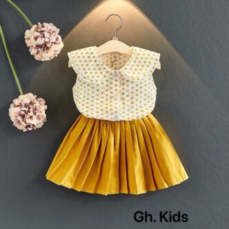 Áo cổ sen phối chân váy xếp ly – R237