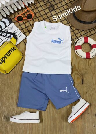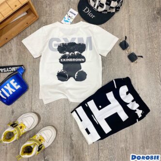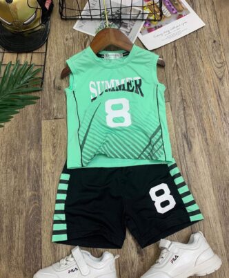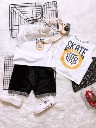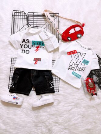 Bộ áo cotton sát nách in chữ phối lửng giả jean, có 3 dòng size nhí đại cồ – R774