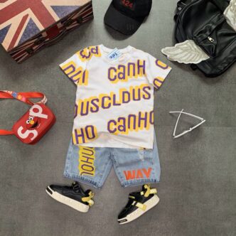 Bộ áo cotton in hình phối jean lửng, size cồ – R572
