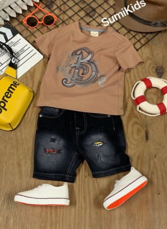 Bộ áo cotton in chữ phối jean lửng, size đại – R525