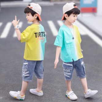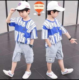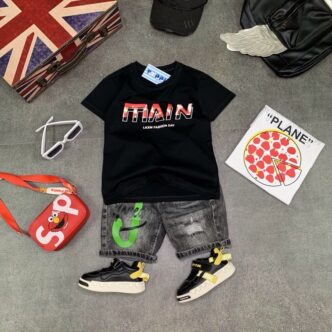 Bộ áo thun cotton in chữ phối jean lửng – R436